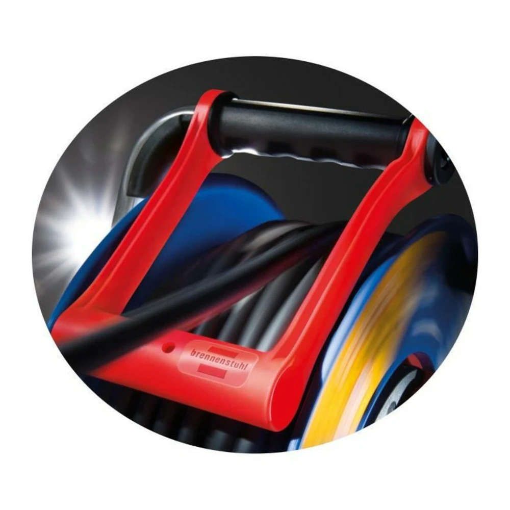 Enrouleur-prolongateur de jardin standard de brennenstuhl – dispose d’un systeme de moyeu idéal pour se déplacer sans risquer de débrancher vos outils electro-portatif – poignée de transport ergonomique avec guide-câble