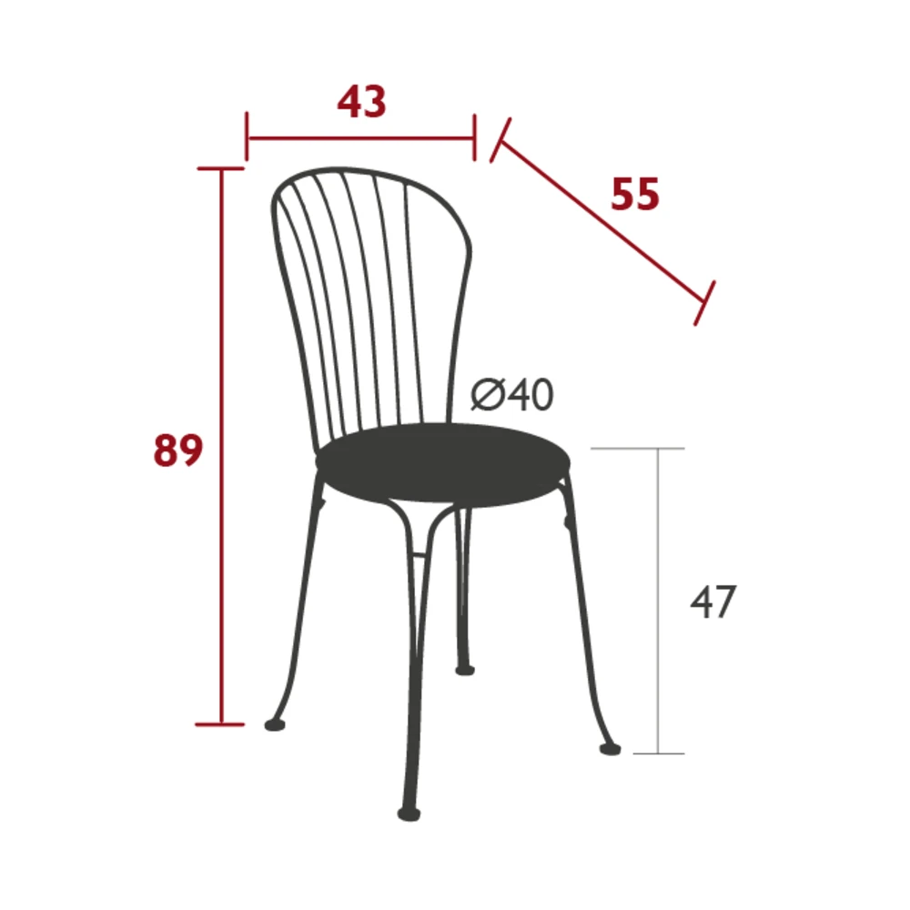 Avec son design élégant, à mi-chemin entre romantisme et style contemporain, la chaise Opéra ajoutera une touche de raffinement à votre jardin. En acier, elle est particulièrement résistante et saura conserver son bel aspect malgré des conditions météorologiques pas toujours clémentes. La chaise Opéra est en effet revêtue d’une peinture poudre anti-UV, la protégeant de la décoloration. Son dossier arrondi épouse parfaitement les courbes de votre dos et fait de la chaise Opéra un siège confortable. Dimensions : L.36xl.38,7xh.90cm.