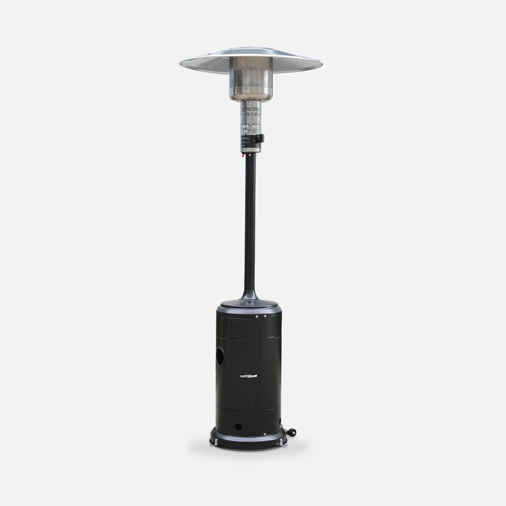 Chauffage D’extérieur Gaz 12.5kw – Finland – Parasol Chauffant Noir. Réglable. Porte En Façade Et Roulettes
