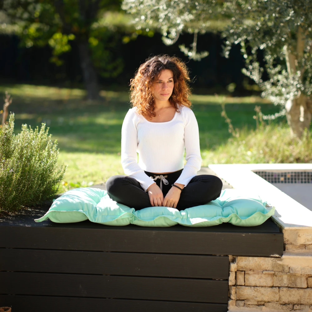 dimensions pratiques : avec 120x60x10 cm, notre coussin s’adapte à toutes vos envies ! Il peut être utilisé pour se détendre contre un mur, recouvrir un banc, s’allonger sur la pelouse, ou plié pour servir d’assise et de dossier sur une chaise longue.