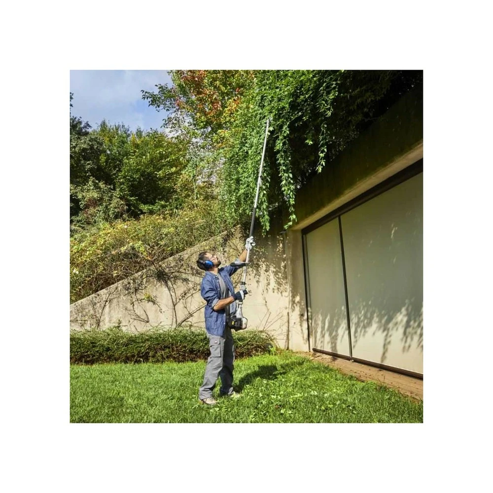 vous pourrez également utiliser votre outil multifonctions alpina en mode tronçonneuse/élagueuse pour élaguer des arbres ou encore en mode taille-haie pour effectuer des travaux d’entretien de vos espaces verts. Enfin, cet outil possède une dernière fonction : l’extension, qui vous permet de réaliser l’ensemble des travaux à distance.