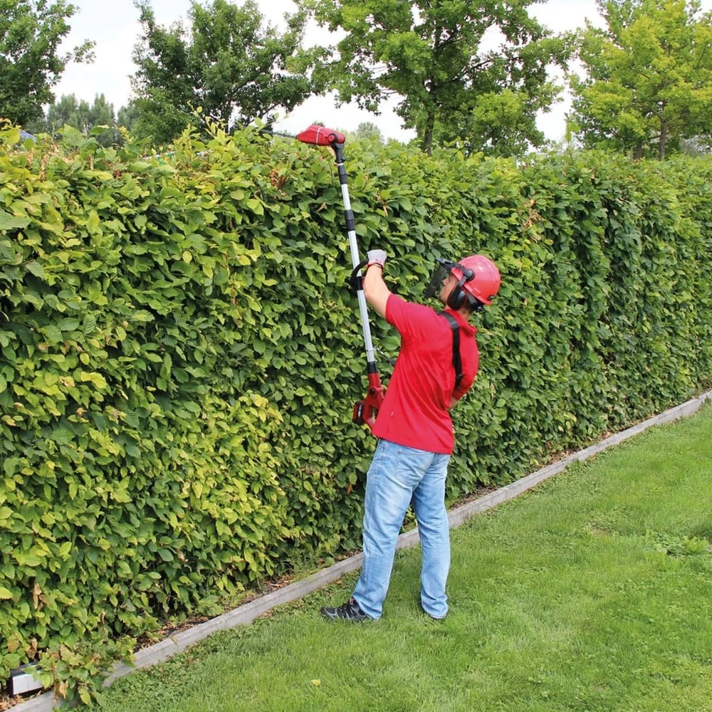 Le taille-haie sans fil compact et facile Ă utiliser ge-hh 18/45 li t-solo de la marque einhell est un excellent outil de jardinage pour tailler ou façonner les haies ou les arbustes dans votre jardin ou sur vos parcelles. Sa lame mesure 450 mm de long et fonctionne Ă une vitesse de 1 700 tr / min. Le manche tĂ©lescopique en aluminium peut ĂŞtre ajustĂ© et fixĂ© Ă l’infini Ă chaque hauteur. La poignĂ©e rĂ©glable supplĂ©mentaire peut ĂŞtre personnalisĂ©e pour l’utilisateur avec son verrouillage rapide et pratique. La tĂŞte motrice peut ĂŞtre inclinĂ©e 7 fois et le manche principal 4 fois pour les ajuster pour effectuer des coupes verticales et horizontales difficiles en hauteur de manière propre et prĂ©cise. Le taille-haie est facile Ă transporter et Ă ranger en un instant dans un minimum d’espace. Remarque : ce produit est livrĂ© sans batterie ou chargeur. Les batteries et les chargeurs pour la gamme de produits power x-change sont disponibles sĂ©parĂ©ment.