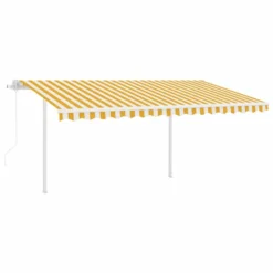 VIDAXL Auvent Rétractable Automatique Et Poteaux 4,5x3m Jaune Et Blanc