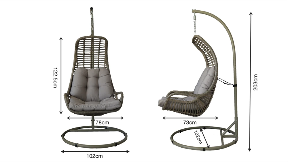sĂ©curitĂ©: la base supporte la chaise suspendue, la capacitĂ© maximale peut aller jusqu’Ă 120 kg.