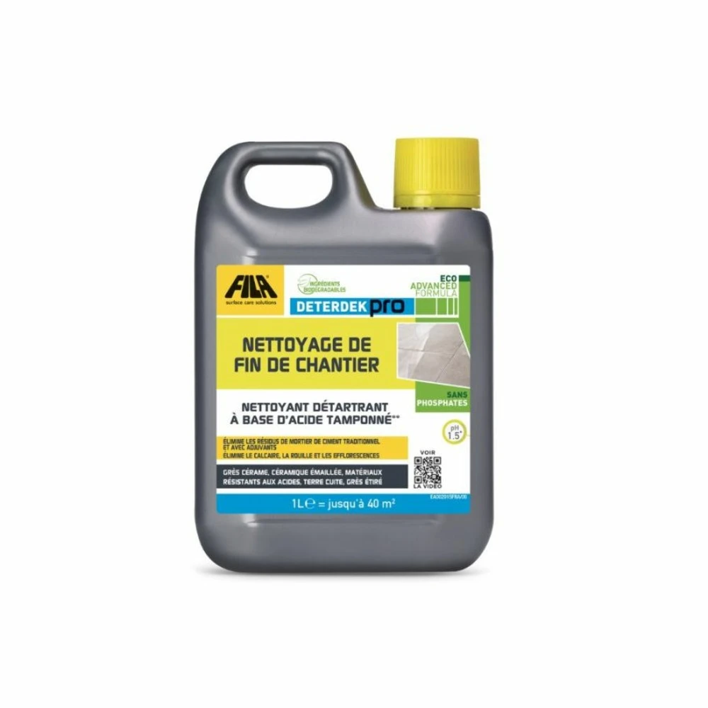le détergent de fin de chantier deterdek est un détergent de qualité professionnelle. Sa formule est écologique avec des ingrédients biodégradables à 98%. Il permet de nettoyer après la pose et pour l’entretien des surfaces extérieures.