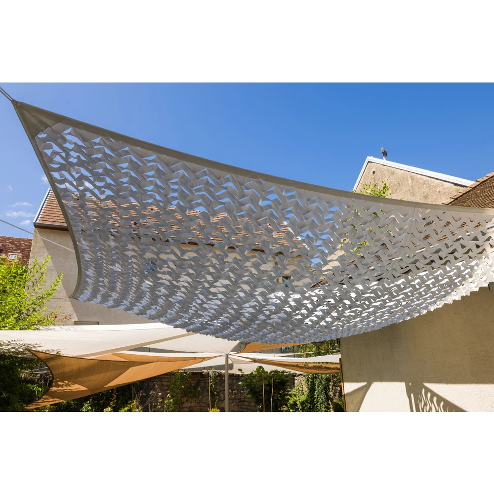 Besoin d’un peu d’ombre sur votre terrasse ou dans votre jardin ? Alors, offrez-vous vite ce voile d’ombrage facile à installer. Vous allez adorer son joli coloris blanc pur, sa toile découpée effet camouflage et sa forme rectangulaire moderne et design. Ce voile d’ombrage est fabriqué en tissu polyester et il offre un ombrage doux. Il possède des dimensions de 3 mètres par 2,4 mètres. Très pratique, il s’attache grâce à des renforts et des fixations par corde.