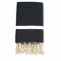 Fouta En Coton Tissage Nid D’abeille Spa 100x200cm Bleu Marine