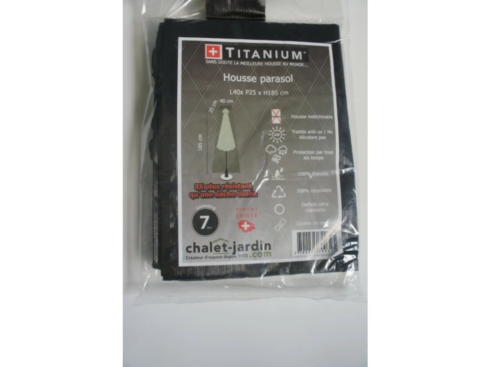 Techniquesdimensions ext. Hors tout (l x p x h) : 40 x 25 x 185 cmgrammage : 90 g/m ²matiã¨re : polyã©thylã¨necoloris : noir rayã© blancinclus : cordon de serrage ultra rã©sistantssouple et lã©gã¨re / 100 % recyclable / 100 % ã©tanche ĂŁÂ l’eau, ĂŁÂ la poussiã¨re et aux uv / rã©siste aux changements de tempã©ratures et ĂŁÂ de nombreux produits chimiquescolis dimensions : 40 x 30 x 40 cm poids : 0,150 kgcette housse de protection pour parasol dã©portã© vous permettra de protã©ger votre parasol en le gardant au sec et ĂŁÂ l’abri des intempã©ries. Cette housse de protection bã©nã©ficie d’un procã©dã© ultrasonique pour une meilleure rã©sistance, systã¨me brevetã© (suisse).avantages : ultra rã©sistant, technologique, opaque, traitã© pour une protection uv, pratique, ne nã©cessite aucun entretien
