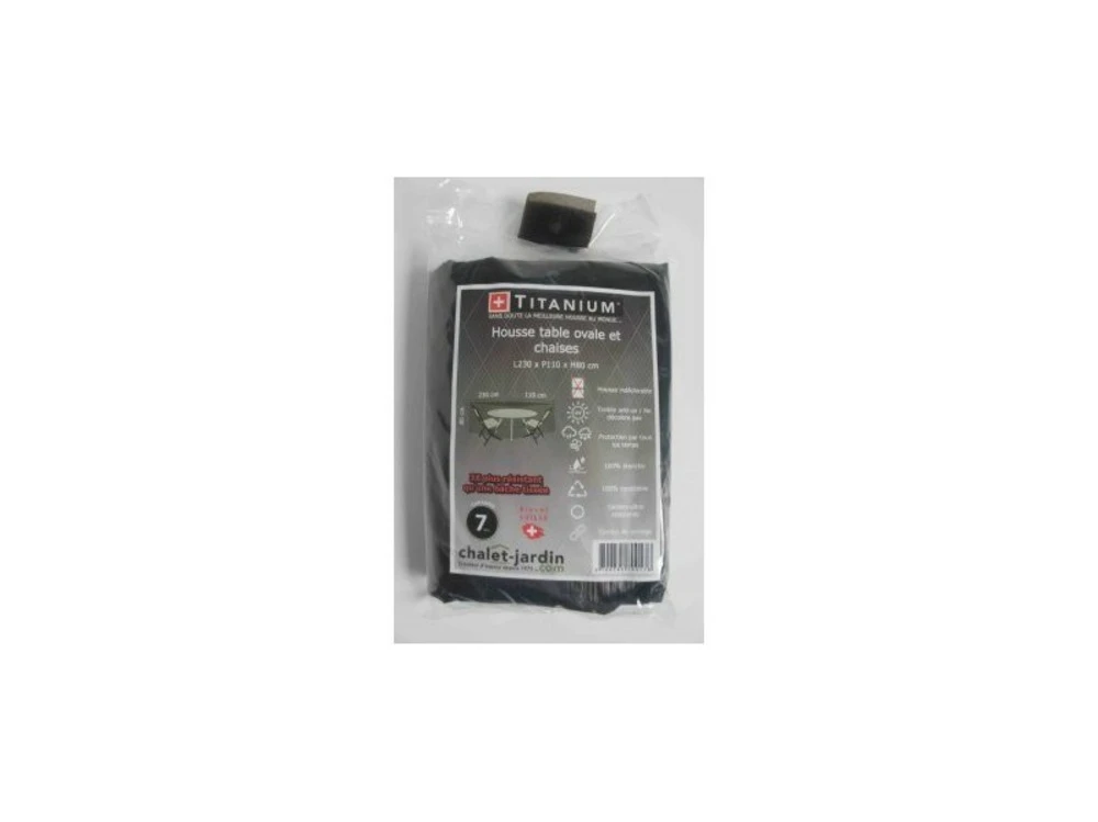 Techniques dimensions ext. Hors tout (l x p x h) : 230 x 110 x 80 cm grammage : 90 g/m ² matiã¨re : polyã©thylã¨ne coloris : noir rayã© blanc inclus : cordon de serrage ultra rã©sistants souple et lã©gã¨re / 100 % recyclable / 100 % ã©tanche ã l’eau, ã la poussiã¨re et aux uv / rã©siste aux changements de tempã©ratures et ã de nombreux produits chimiquescette housse de protection pour votre table ovale et vos chaises vous permettra de protã©ger vos chaises en le gardant au sec et ã l’abri des intempã©ries. Cette housse de protection bã©nã©ficie d’un procã©dã© ultrasonique pour une meilleure rã©sistance, systã¨me brevetã© (suisse).avantages : ultra rã©sistant, technologique, opaque, traitã© pour une protection uv, pratique, ne nã©cessite aucun entretien