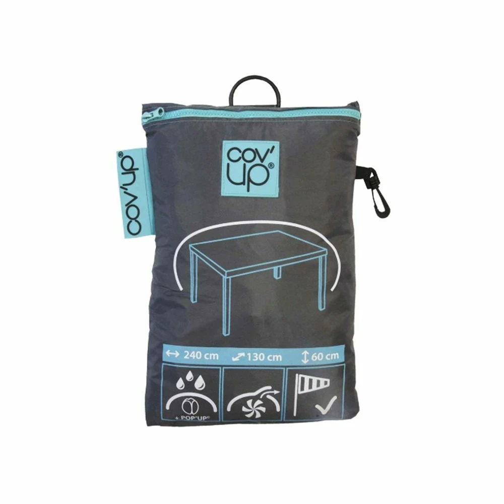 astucieux, le système breveté pop’up permet d’éviter la stagnation de l’eau sur la table en favorisant son évacuation. Il suffit de poser le dispositif au centre de la table puis de le recouvrir avec la housse. Un lien de serrage situé à la base de la housse et des scratchs aux 4 coins permettent de la maintenir en place sur la table.