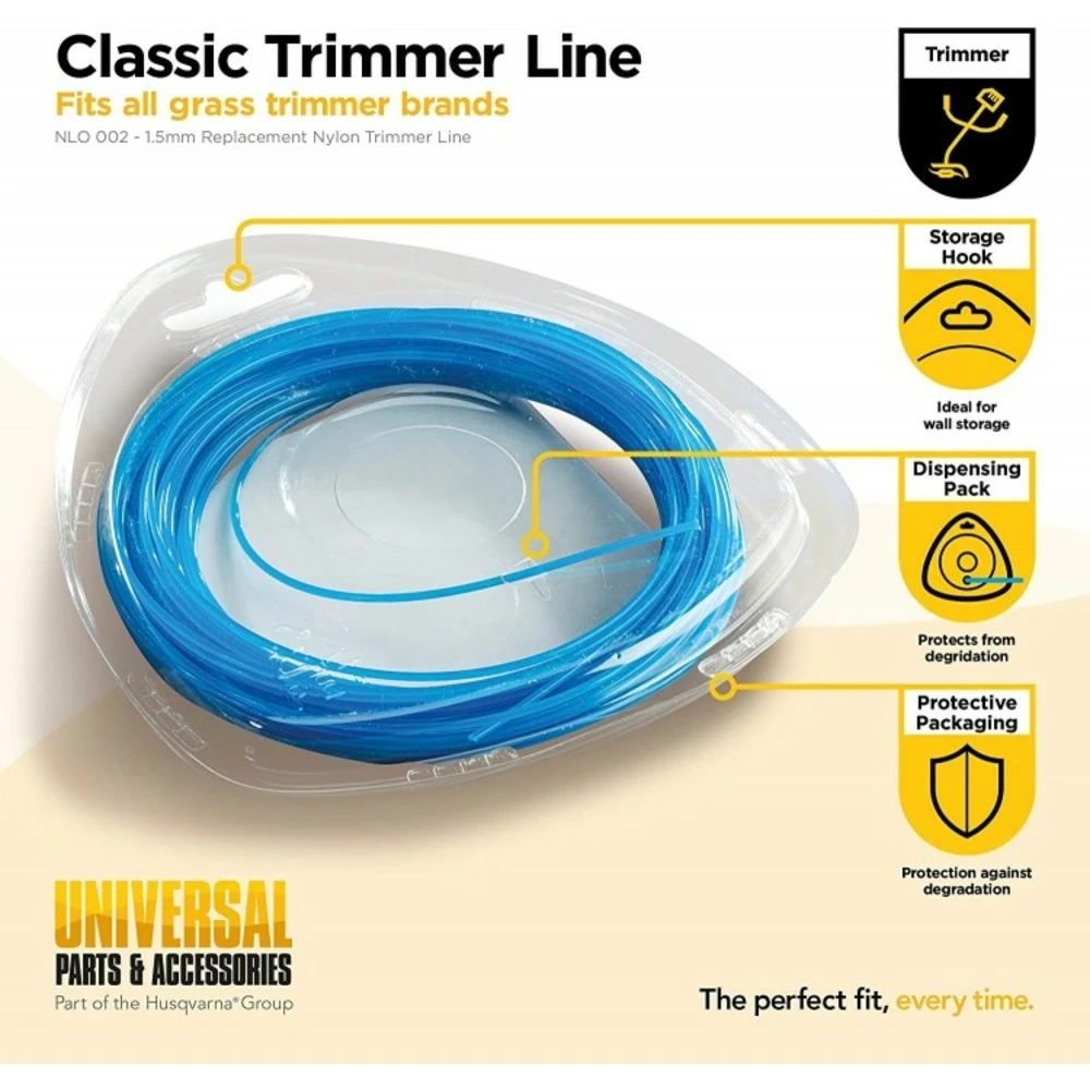 Ligne de coupe universal – accessoire d’origine de qualitĂ© mcculloch Ă©prouvĂ©e : le fil de nylon universal est idĂ©al pour tailler le gazon et les broussailles en toute tranquillitĂ©. Grâce Ă une technologie brevetĂ©e, les pousses, les chardons et mĂŞme l’herbe dure sont coupĂ©s proprement et, surtout, sans bruit. Le fil de coupe est en nylon rĂ©sistant et durable.fil nylon rond 1.5mm x 15m de la marque universalqualitĂ© mcculloch : la ligne de fauchage coupe l’herbe et les broussailles avec une prĂ©cision maximale et assure une coupe nettedurabilitĂ© : le fil en nylon est rĂ©sistant Ă la dĂ©chirure et peut ĂŞtre utilisĂ© pendant longtempsfil de coupe de haute qualitĂ© : le fil a une longueur de 15 m