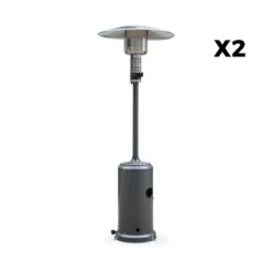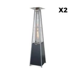 Lot De 2 Parasols Chauffants Gaz Pyramide. Gris Clair. Véritable Flamme. Roulettes Incluses