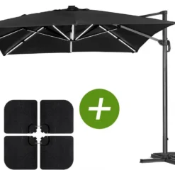 : parasol jardin déporté led alu sun 3 luxe – carré – 3 x 3 m – coloris noir – dalles lestées incluses.