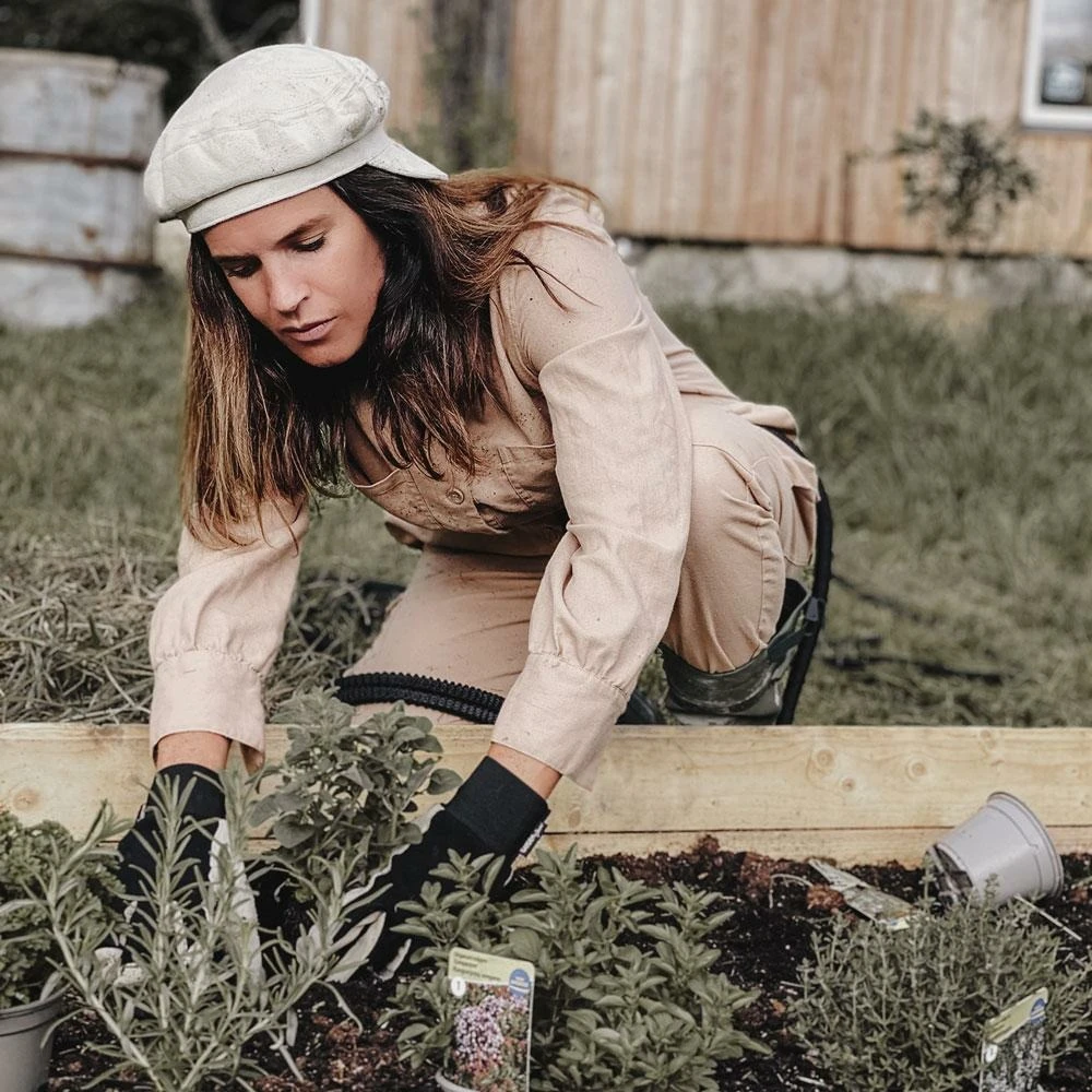 peut-être étais-je la plus heureuse lorsque j’ai vu la combinaison de jardin by benson. Un seul vêtement dans lequel on peut sauter. Pas de coutures qui frottent, pas de serrement, peu importe comment je me tortille et me tourne dans le jardin. Pratique avec ses genoux renforcés et d’un design si confortable. Un exemplaire de chaque couleur s’impose ! (j’avoue qu’il m’est arrivé de l’enfiler, complètement nue en dessous, et de me jeter sur le canapé pour manger du chocolat. Ça marche aussi pour ça) ». Hanna jurjaks, blekingeplantan (magasin de jardinage renommé en suède)