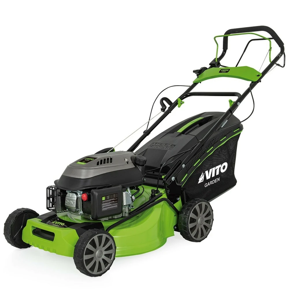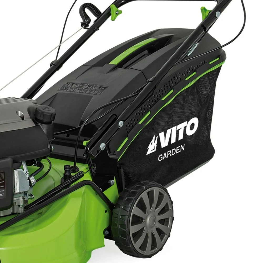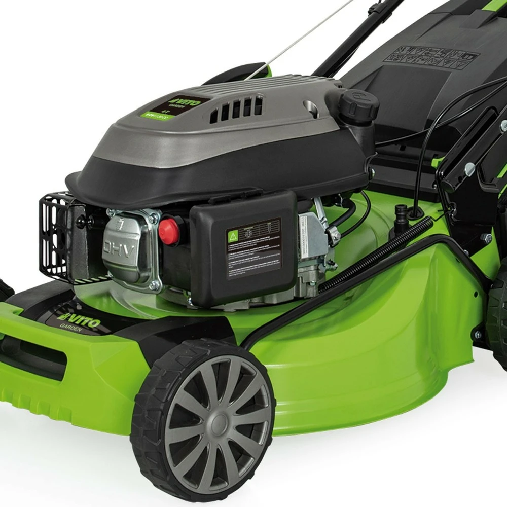 la tondeuse thermique 5 cv de vito est équipée d’un nouveau moteur aux normes euro 5 ohv 4 temps de 144 cm³. Elle fonctionne avec de l’essence sp95/98 et sa largeur de coupe est de 480 mm.
