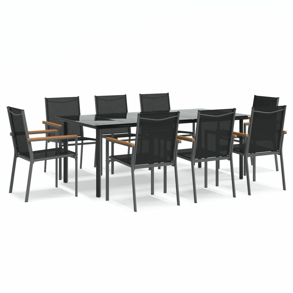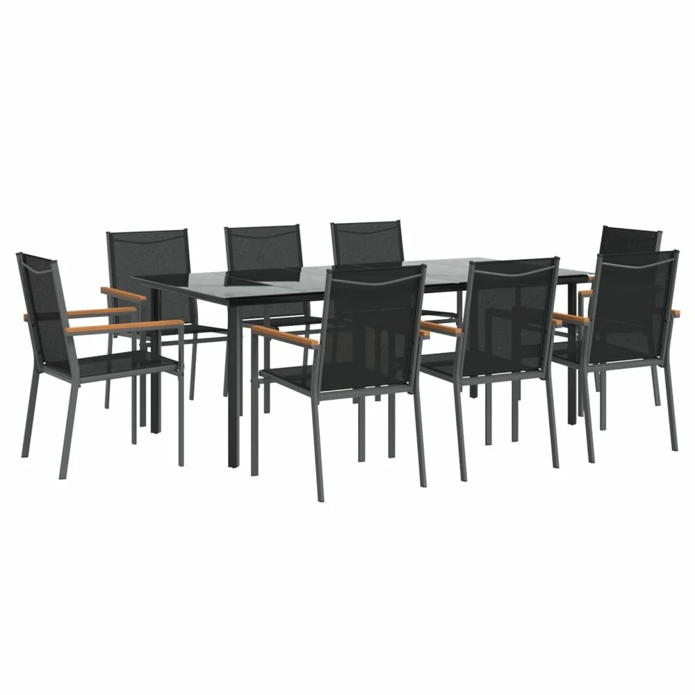 Détendez-vous et profitez d’un bon thé de l’après-midi ou de n’importe quel repas avec votre famille et vos amis autour de cet ensemble de salle à manger de jardin ! Matériau durable : le tissu en textilène permet à l’air de circuler librement à travers lui tout en étant résistant aux rayons uv. Le textilène est donc idéal pour les temps chauds. En tant que matériau durable et solide, il est très résistant aux déchirures, aux perforations et aux moisissures.cadre robuste et stable : les cadres en acier rendent l’ensemble à manger robuste et stable pour une utilisation quotidienne à l’extérieur.dessus de table pratique : le plateau lisse de la table à manger est en verre trempé facile à nettoyer avec un chiffon humide. De plus, il offre un excellent support pour contenir vos repas, boissons et autres objets décoratifs.assise confortable : la chaise à manger est conçue avec un dossier et des accoudoirs pour vous offrir une expérience d’assise confortable. Remarque :pour que vos meubles d’extérieur restent beaux, nous vous recommandons de les protéger avec une housse imperméable.