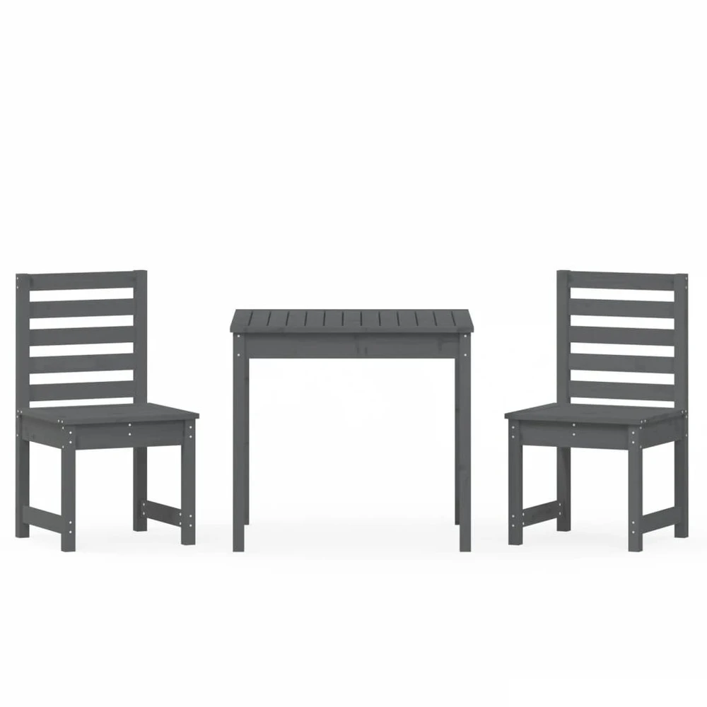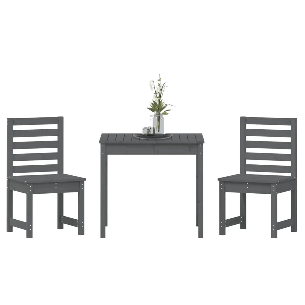 Cet ensemble de bistro de jardin classique en bois est parfait pour une utilisation à l’extérieur et est conçu pour être le point central de votre jardin, terrasse ou patio, etc. Bois de pin massif : l’ensemble de bistro est fabriqué en bois de pin massif. Le bois de pin massif est un matériau naturel magnifique. Le bois de pin a un grain droit et les nœuds donnent au matériau son aspect caractéristique et rustique.dessus de table pratique : cette table de bistrot vous offre un dessus de table solide. Vous pouvez placer vos collations, boissons et n’importe laquelle de vos décorations préférées.expérience d’assise confortable : l’assise et le dossier à lattes de la chaise de bistrot offrent un excellent soutien.nombreuses applications : l’ensemble de bistrot d’extérieur au design simple et intemporel convient aux balcons, jardins, terrasses, etc. Bon à savoir :pour faciliter au maximum le montage, chaque produit est livré avec des instructions. Remarque :pour que vos meubles d’extérieur restent beaux, nous vous recommandons de les protéger avec une housse imperméable. couleur : grismatériau : bois de pin massiftable :dimensions : 82,5 x 82,5 x 76 cm (l x l x h)chaise de jardin :dimensions : 50 x 48 x 91,5 cm (l x p x h)largeur du siège : 50 cmhauteur du siège à partir du sol : 43 cmcapacité de charge maximale (par siège) : 110 kg