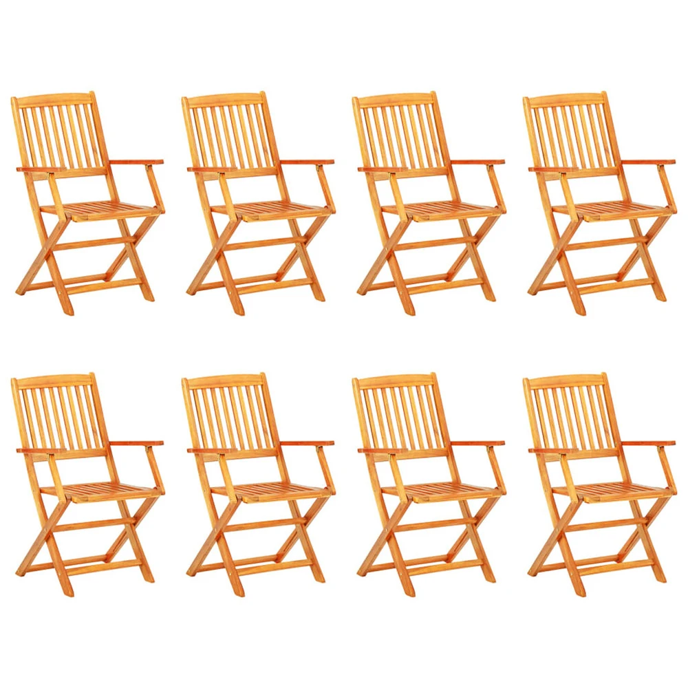 Cet ensemble de salle Ă manger Ă©lĂ©gant et contemporain se compose d’1 table ovale pliable et de 8 chaises pliables avec accoudoirs et va ajouter une touche de luxe Ă n’importe quel dĂ®ner. Notre mobilier en bois deviendra le point central de votre jardin, terrasse ou patio. L’ensemble de salle Ă manger est fabriquĂ© en bois d’acacia massif de haute qualitĂ©, un bois dur tropical, qui est rĂ©sistant aux intempĂ©ries et durable pour des annĂ©es d’utilisation. La surface finie en huile est Ă©galement facile Ă nettoyer avec un chiffon humide. La table et les chaises peuvent ĂŞtre pliĂ©es pour Ă©conomiser l’espace lorsqu’elles ne sont pas utilisĂ©es. La livraison comprend 1 table ovale et 8 fauteuils pliables.