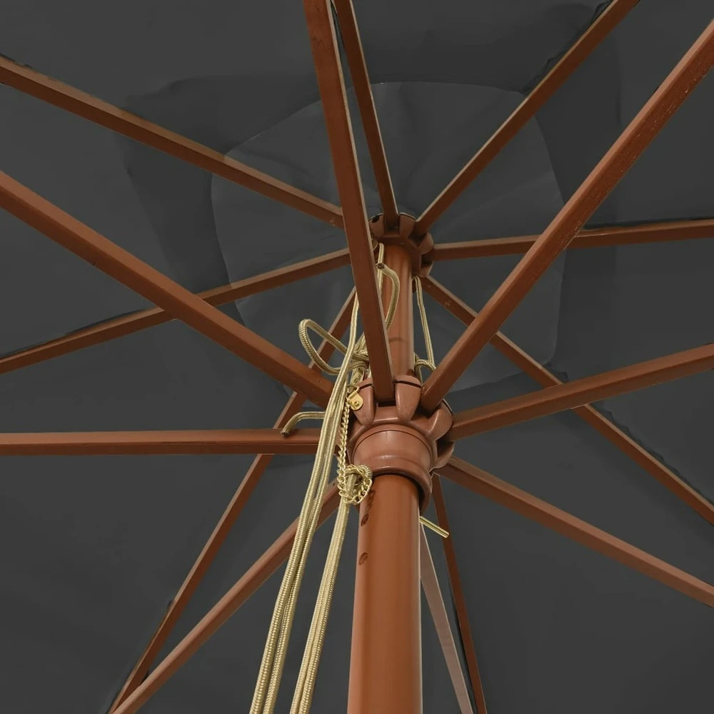 Ce parasol de jardin est parfait pour créer de l’ombre et vous protéger des rayons uv nocifs du soleil. Matériau durable : fabriqué en polyester anti-uv et anti-décoloration, le parasol vous offre une protection optimale contre le soleil et est facile à nettoyer.cadre stable : le mât en bois dur solide avec des nervures durables rend le parasol de jardin très stable et durable.ventilation : le morceau de tissu supplémentaire au sommet du parasol permet au vent et à la chaleur de s’évacuer, ce qui fait de ce parasol un excellent choix pour la vie à l’extérieur.facile à utiliser : le parasol d’extérieur s’ouvre et se ferme facilement grâce au système de double poulie. Remarque :ce produit n’est pas 100 % imperméable. Nous recommandons de traiter ce produit avec un spray imperméable pour une meilleure résistance à l’eau.