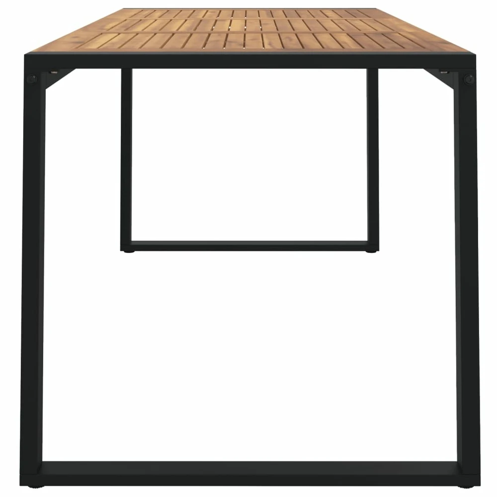 Avec la table de jardin avec pieds en forme de u, profitez d’un bon repas en plein air avec votre famille et vos amis ! Bois d’acacia massif : le bois d’acacia massif est un matériau naturel magnifique. Le bois d’acacia un bois dur tropical, qui est dense, robuste et durable.pieds en métal : les pieds en métal thermolaqué de la table d’extérieur assurent robustesse et stabilité. Ils donnent également à la table de patio un aspect industriel.dessus stable : le dessus stable du salon de jardin est idéal pour vos plats, boissons et collations. Remarque :pour que vos meubles d’extérieur restent beaux, nous vous recommandons de les protéger avec une housse imperméable.