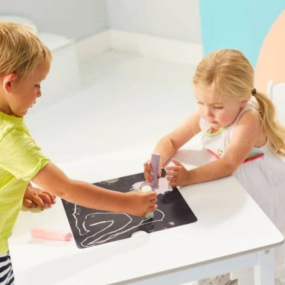 Le joli ensemble de table et de chaises de la marque worlds apart est idéal pour les jeux ou les repas des enfants. Il se compose d’une table et de 2 chaises à bords gris. Au milieu de la table se trouve un espace de rangement intégré pour les jouets ou les objets d’artisanat avec un couvercle amovible. Au dos du couvercle se trouve un tableau noir pour encore plus de plaisir. Cet ensemble de meubles pour tout-petit ira parfaitement dans la chambre ou la salle de jeux des enfants. De plus, la table et les chaises ont un cadre en bois robuste et sont faciles à assembler.